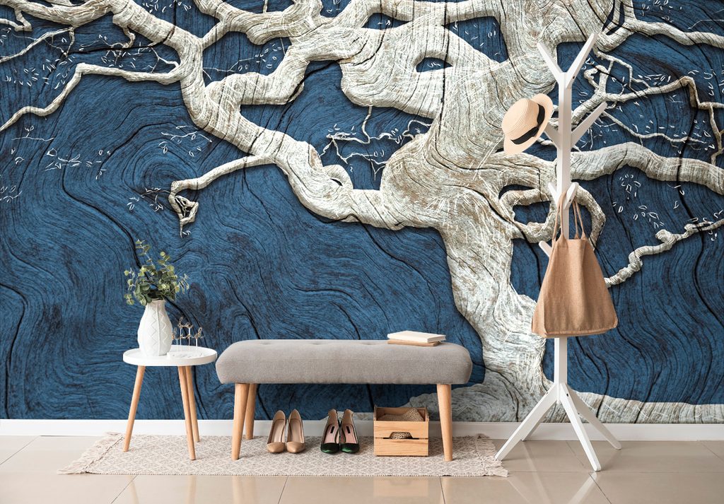 Samolepiaca tapeta abstraktný maľovaný strom s modrým detailom