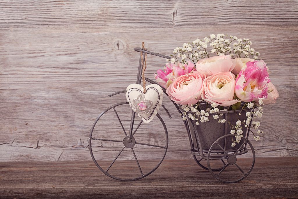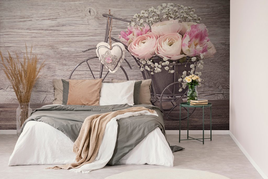 Samolepiaca tapeta bicykel s kvetmi vo vintage štýle