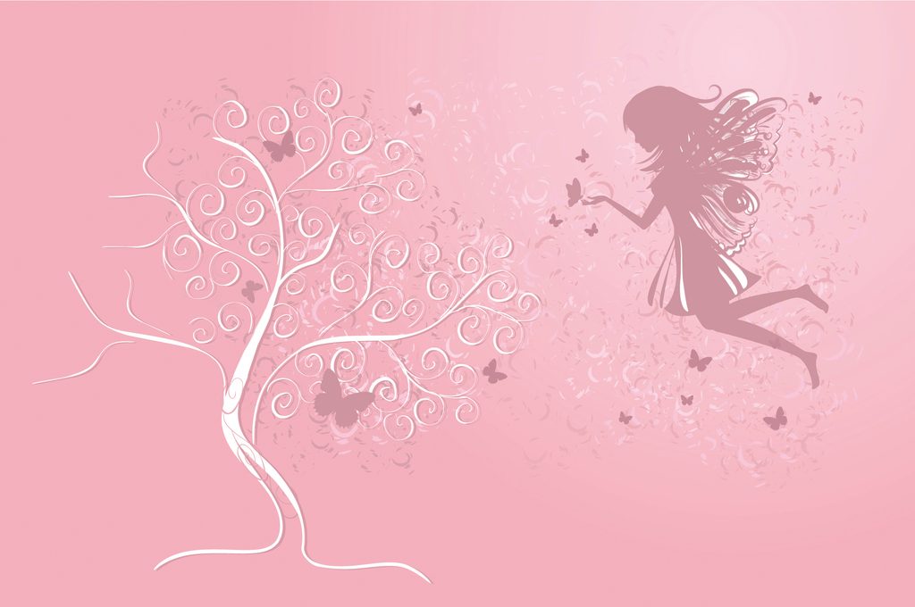 Samolepiaca tapeta čarovná víla na ružovom pozadí