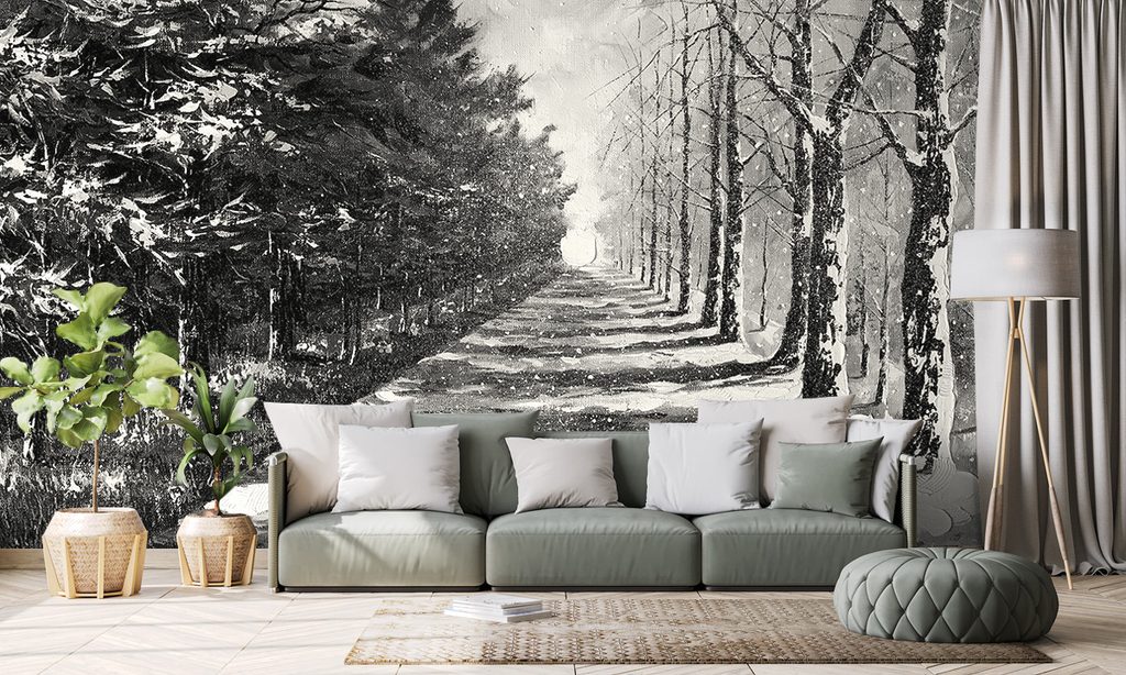 Samolepiaca tapeta čiernobiela alej stromov na prelome ročných období