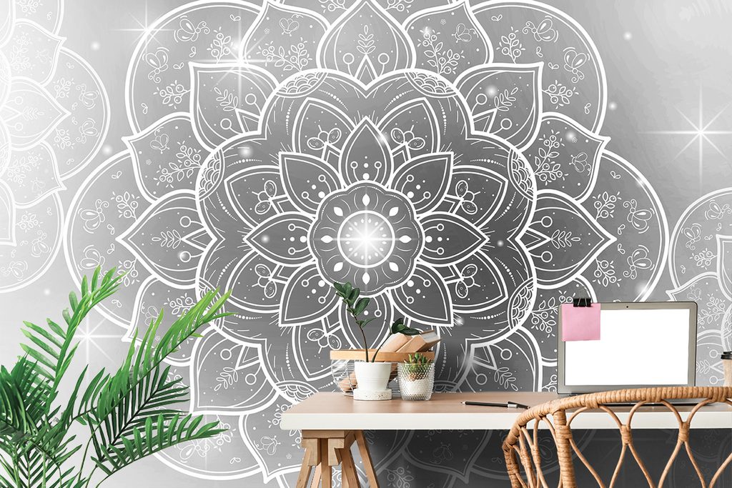 Samolepiaca tapeta čiernobiela Mandala s orientálnym nádychom