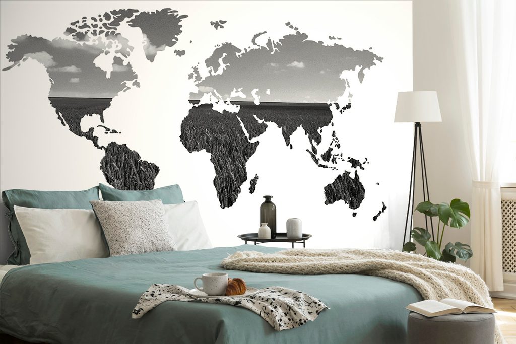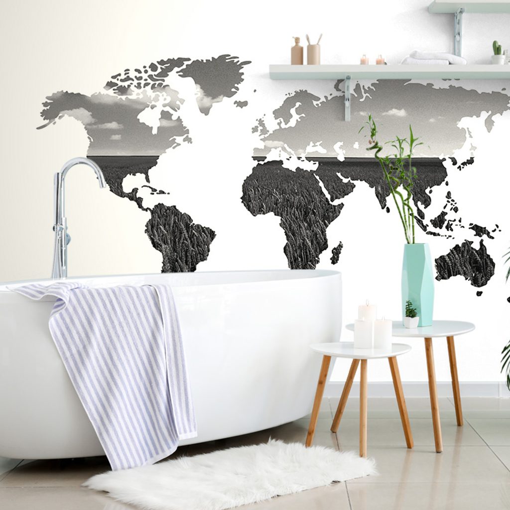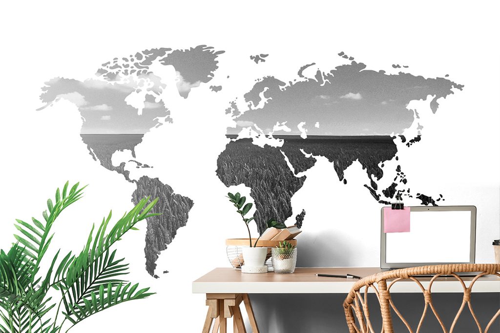 Samolepiaca tapeta čiernobiela mapa v zaujímavom prevedení