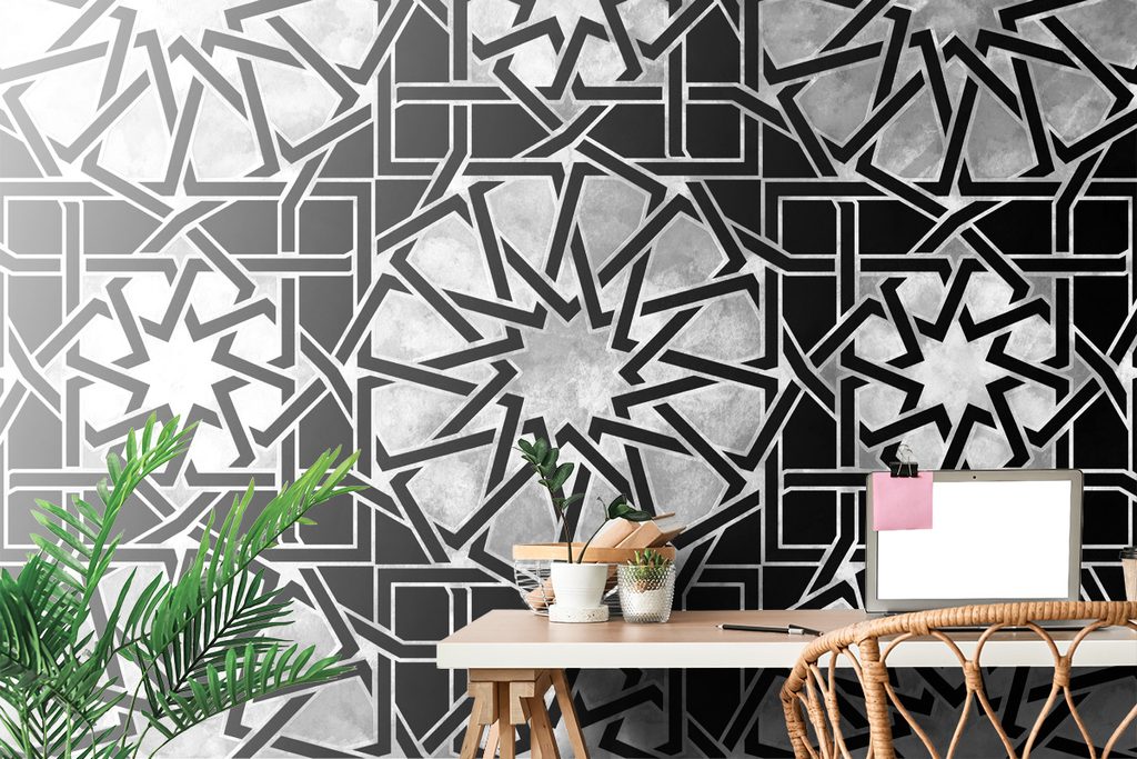 Samolepiaca tapeta čiernobiela mozaika s orientálnym nádychom