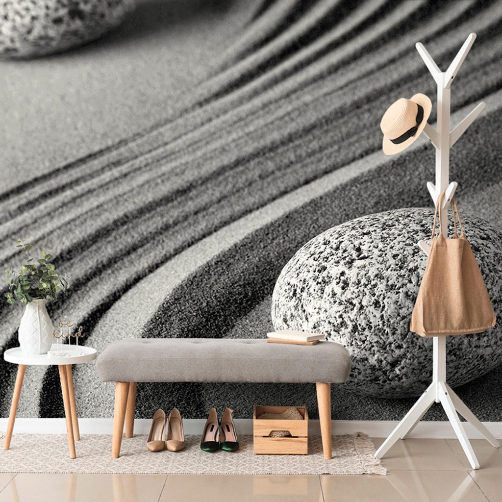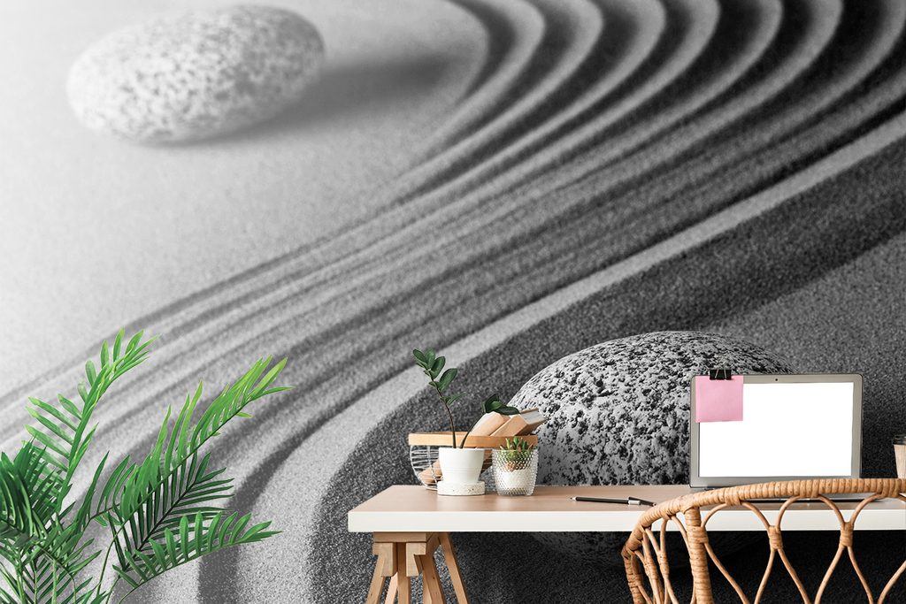 Samolepiaca tapeta čiernobiela súhra kameňov s pieskom