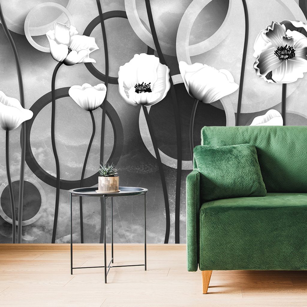 Samolepiaca tapeta čiernobiele kvety maku s abstraktným pozadím