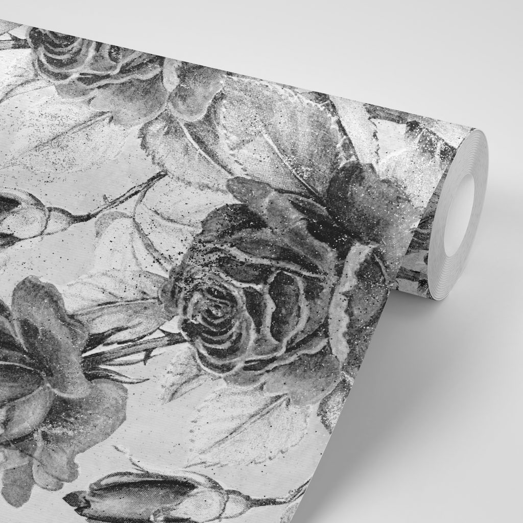 Samolepiaca tapeta čiernobiele ruže vo vintage prevedení