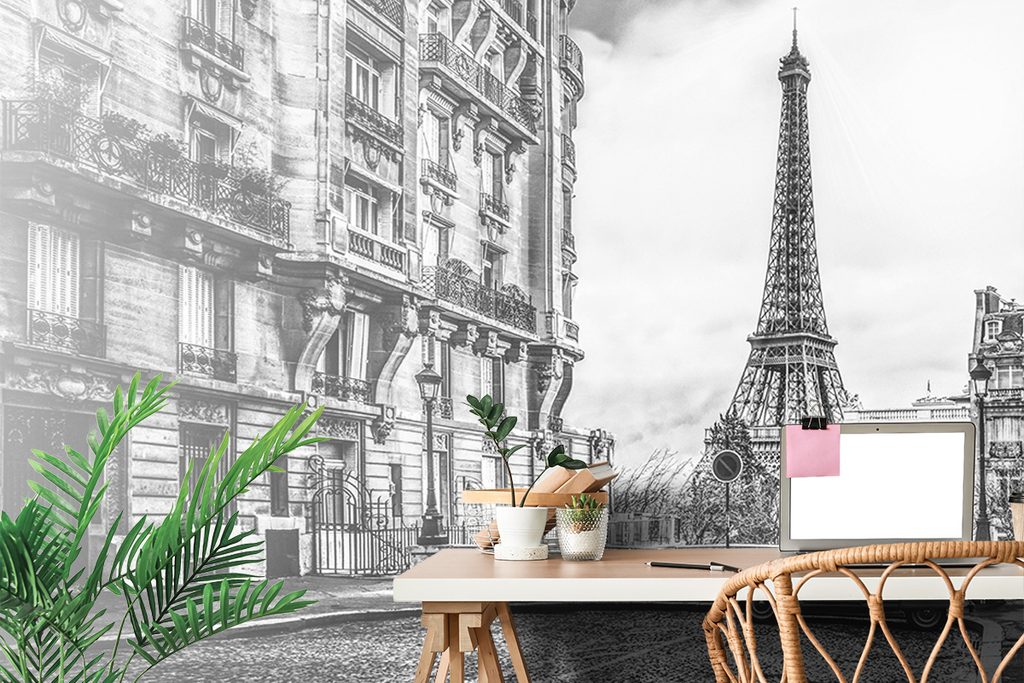 Samolepiaca tapeta čiernobiely retro pohľad na Eiffelovu vežu