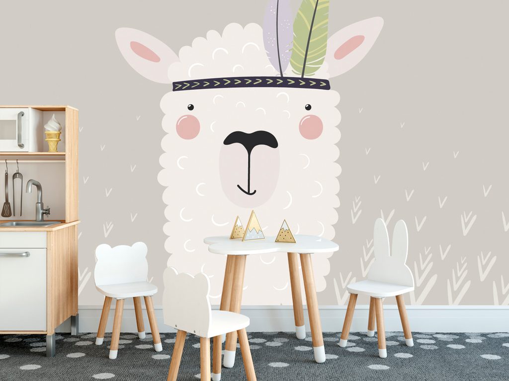 Samolepiaca tapeta dobrodužná lama s pierkami