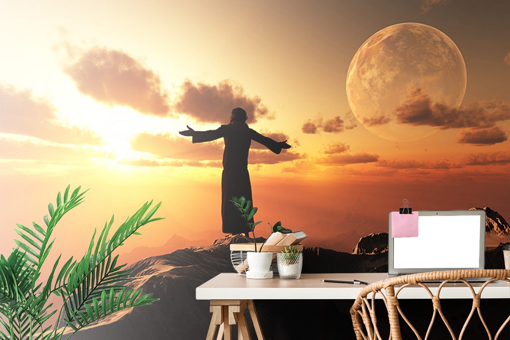 Samolepiaca fototapeta socha Budhu pri východe slnka