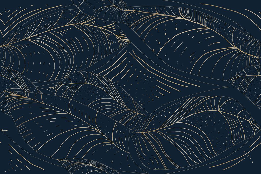 Samolepiaca tapeta eleganté zlaté listy na modrom pozadí