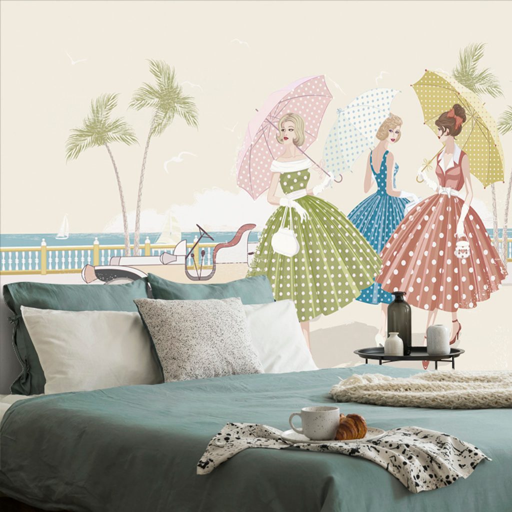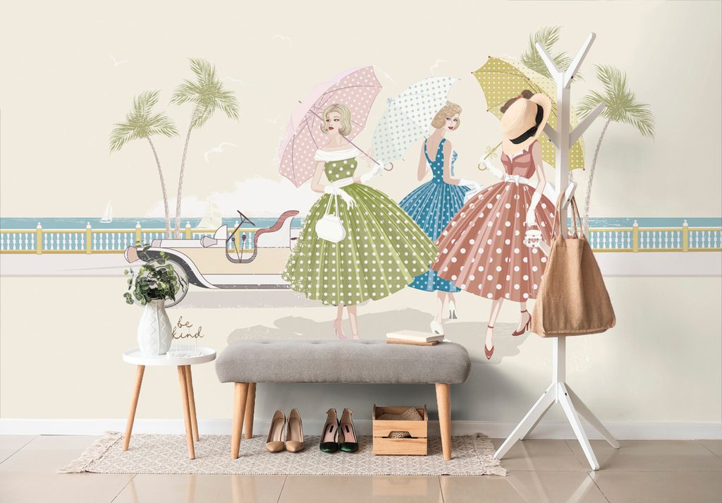 Samolepiaca tapeta elegantné dámy na pláži