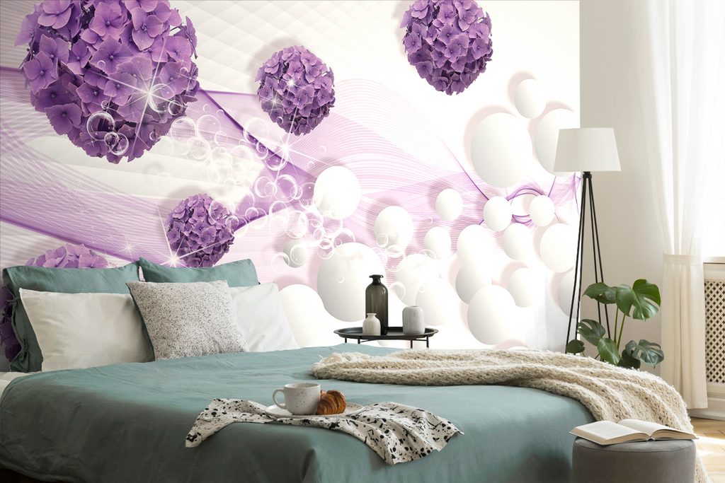 Samolepiaca tapeta fialové kvety na abstraktnom pozadí