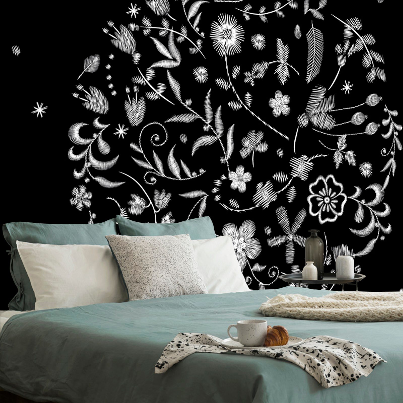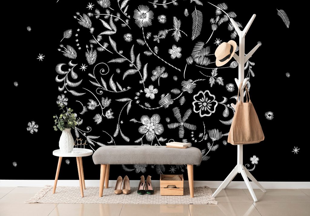 Samolepiaca tapeta folklórne kvety na čiernom pozadí