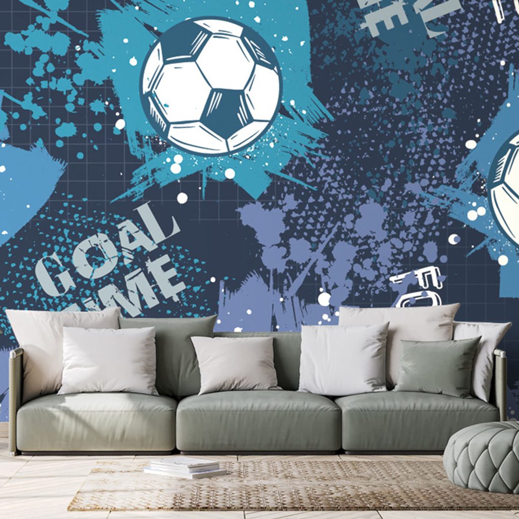 Samolepiaca tapeta futbalová lopta na modrom pozadí