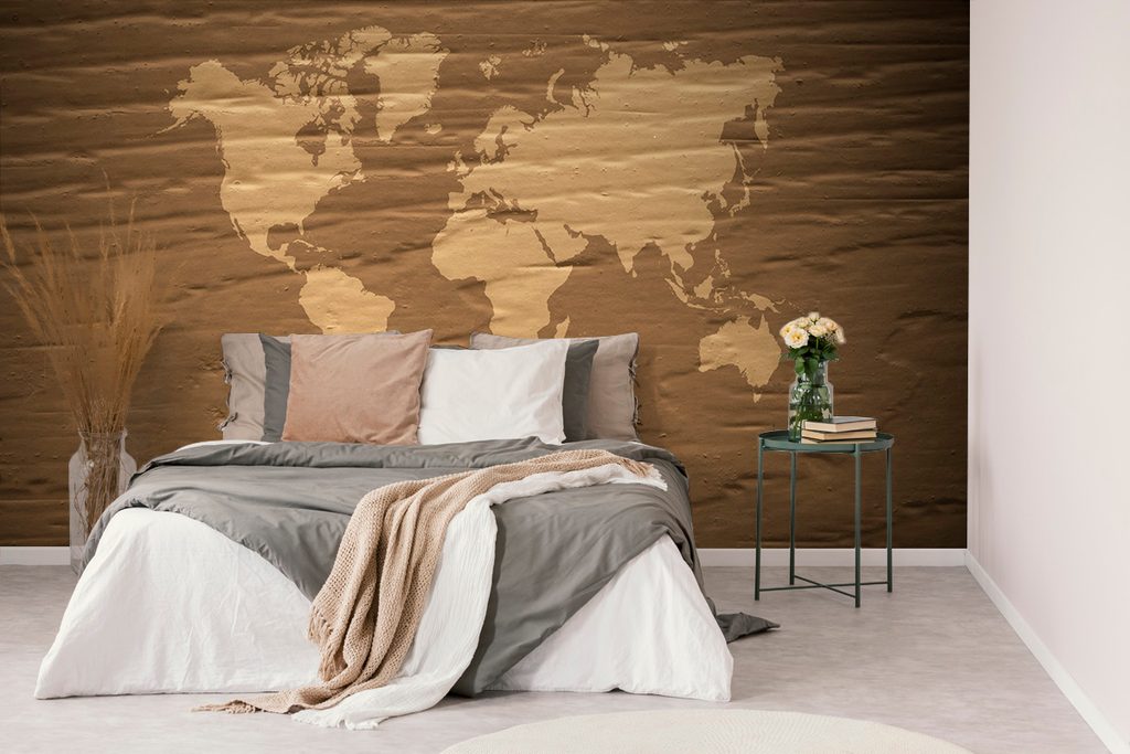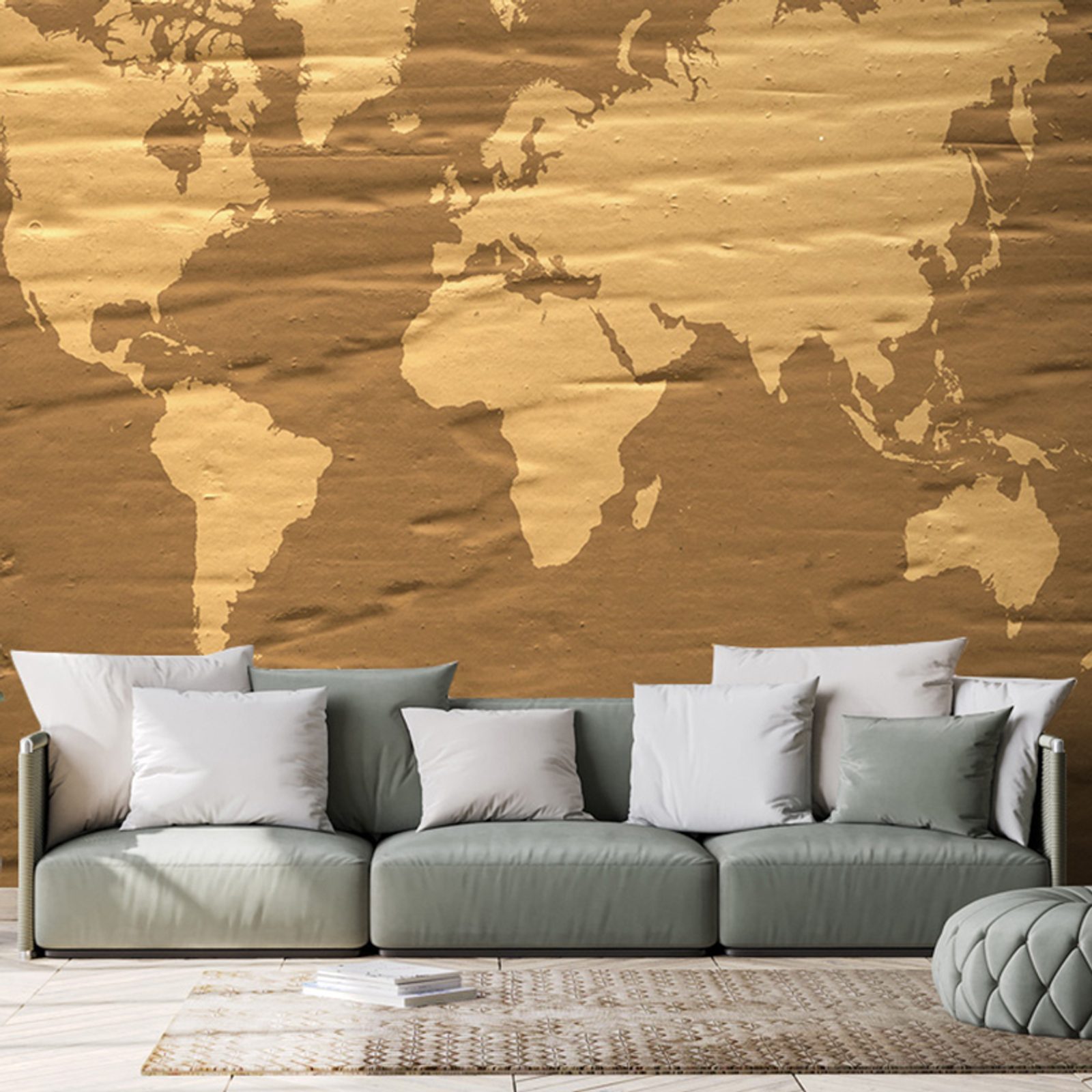Samolepiaca tapeta hnedá mapa na drevenom pozadí
