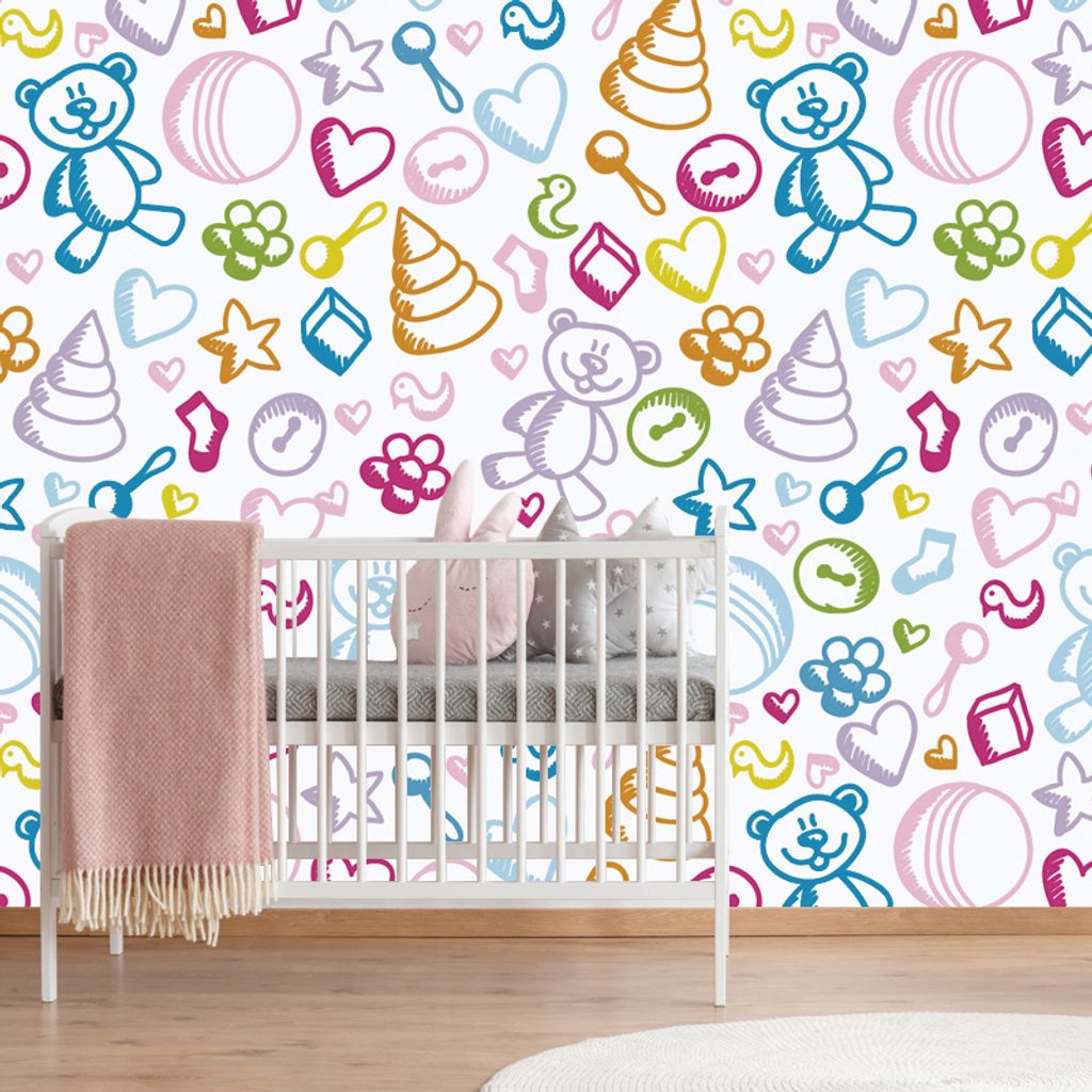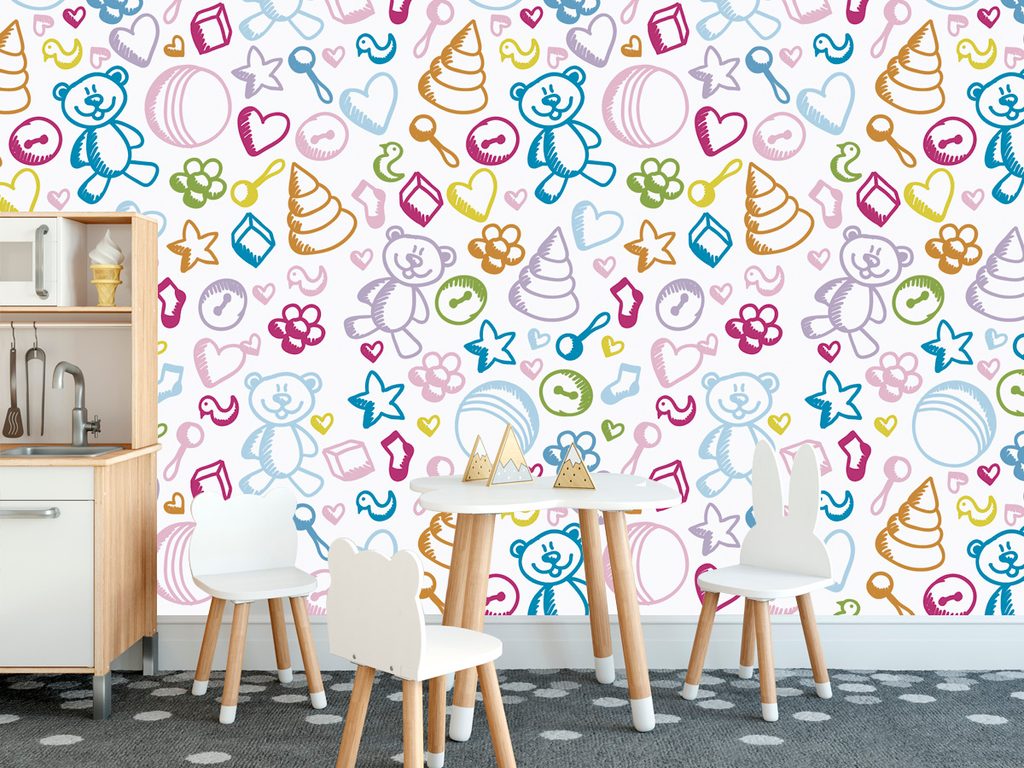 Samolepiaca tapeta hračky v krásnom farebnom prevedení