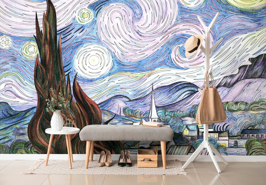 Samolepiaca tapeta imitácia Hviezdnej noci od Van Gogha