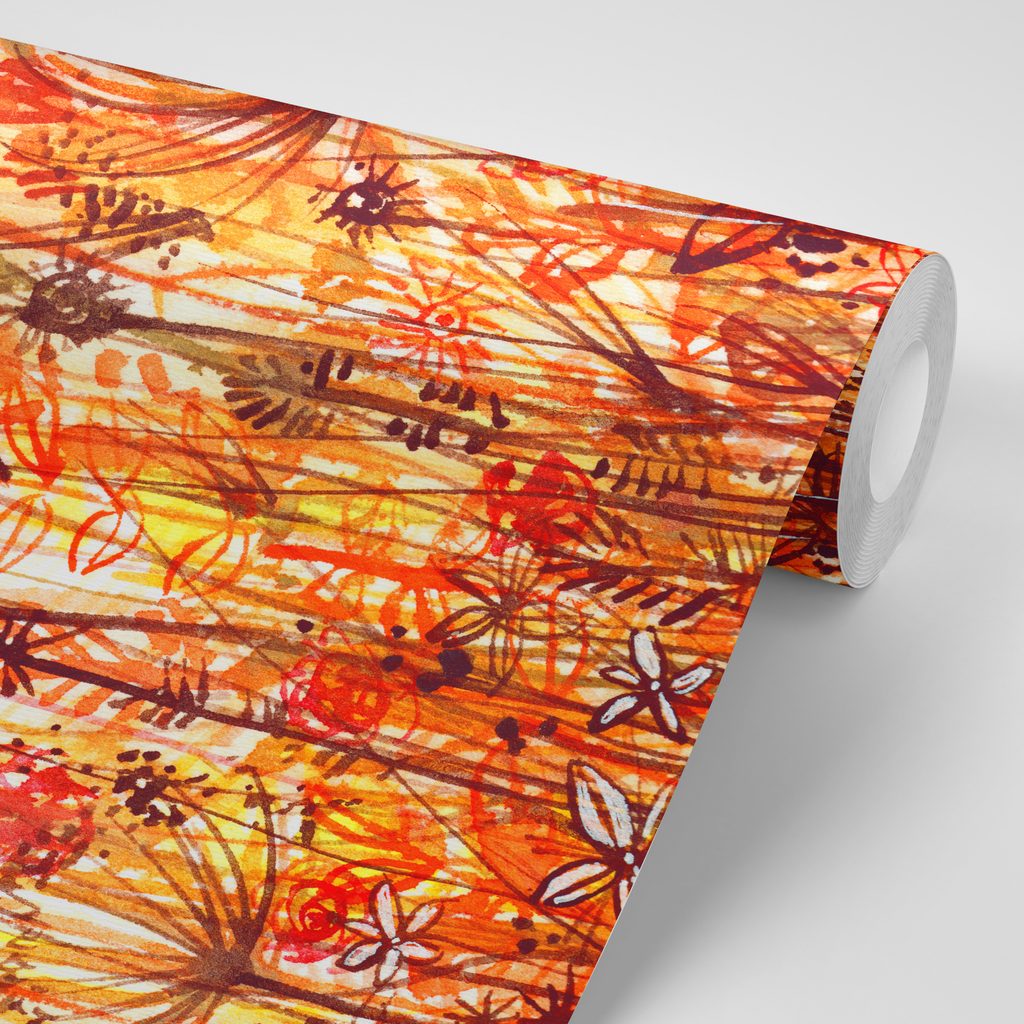 Samolepiaca tapeta jednoduchosť oranžových kvetín
