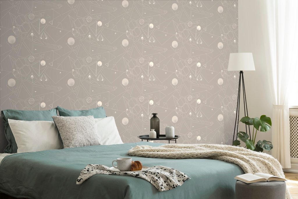 Samolepiaca tapeta jemné geometrické prvky na šedom pozadí