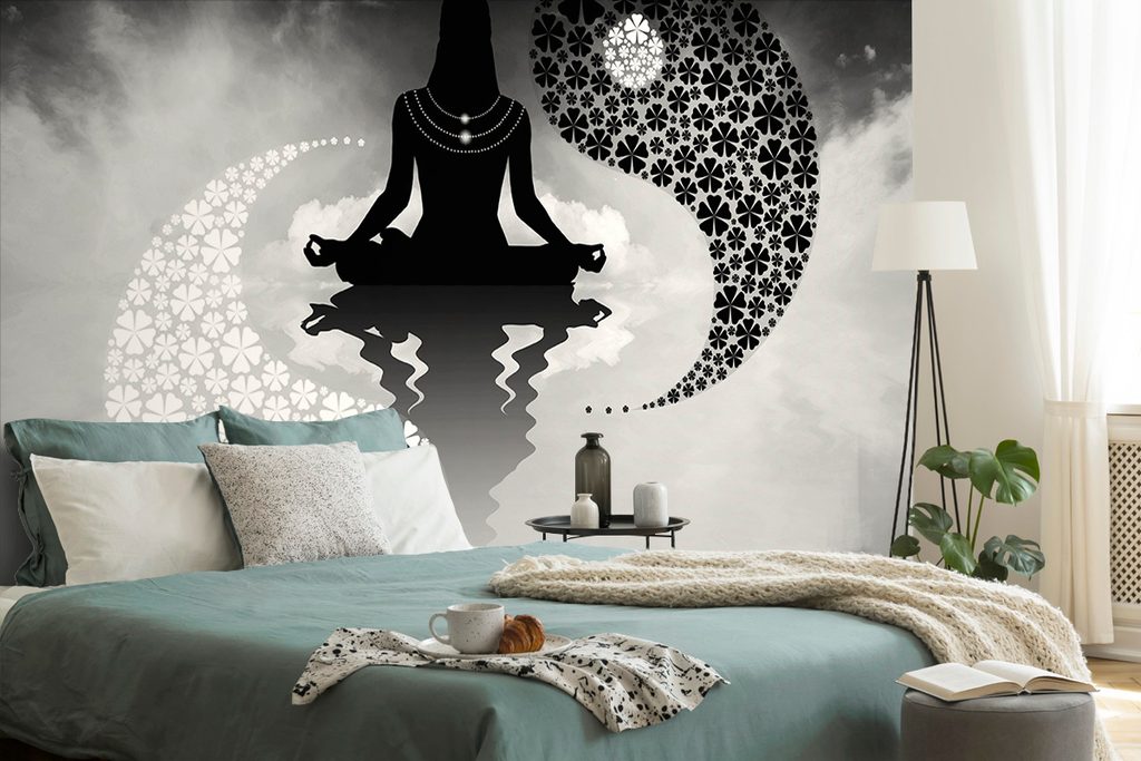 Samolepiaca tapeta jóga v objatí jin a jang