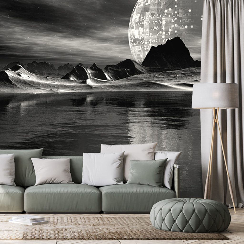 Samolepiaca tapeta krajina budúcnosti v čiernobielom prevedení