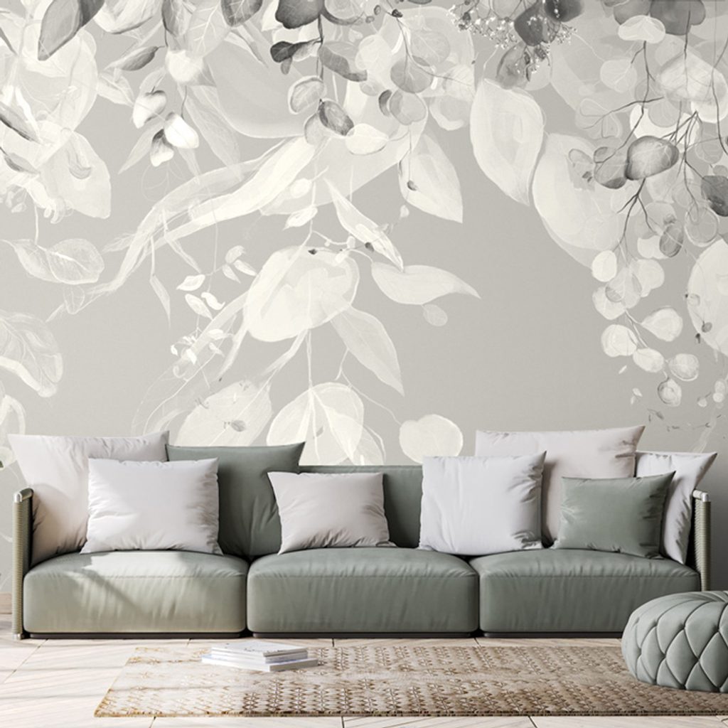 Samolepiaca tapeta krásne listy v čiernobielom prevedení