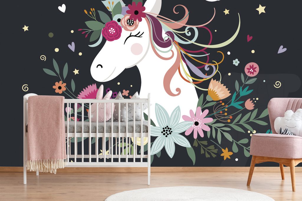 Samolepiaca tapeta krásny jednorožec na kvetinovom pozadí