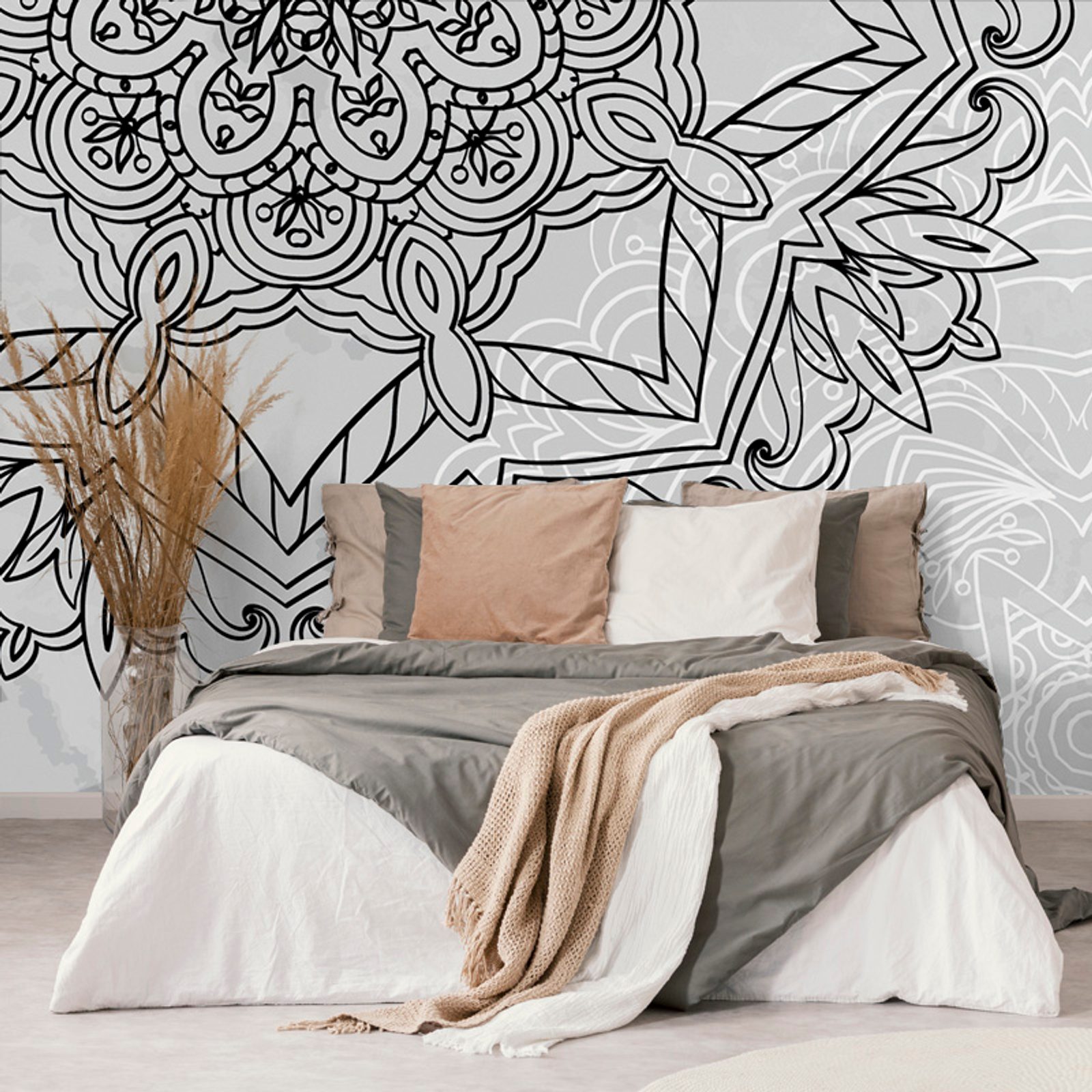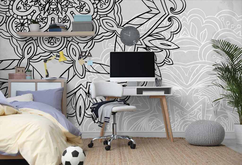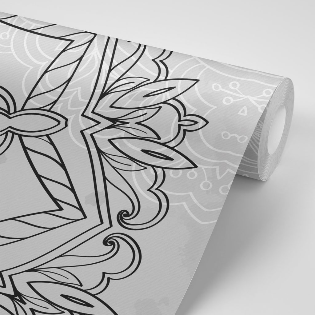Samolepiaca tapeta ľadová Mandala v čiernobielom prevedení