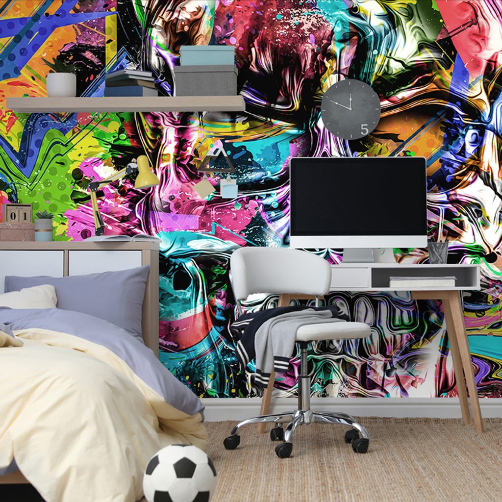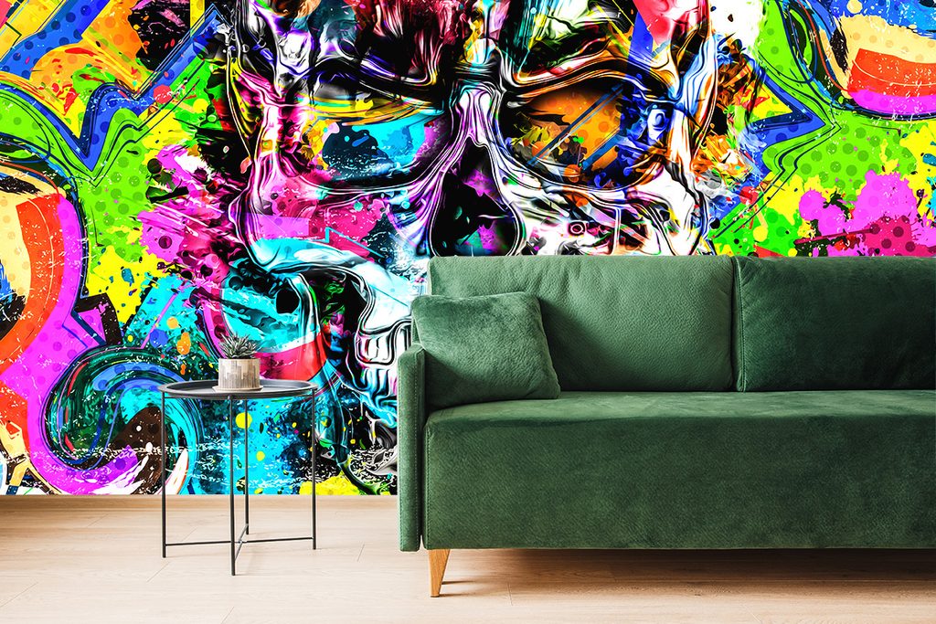 Samolepiaca tapeta lebka v pop art prevedení