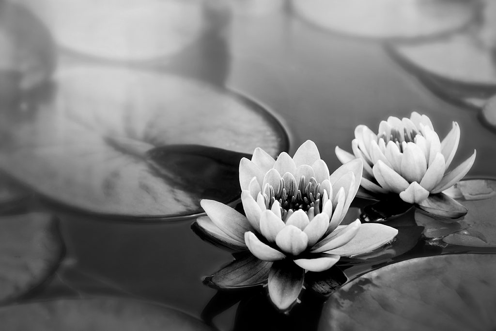 Samolepiaca tapeta lotosový kvet na hladine v čiernobielom prevedení