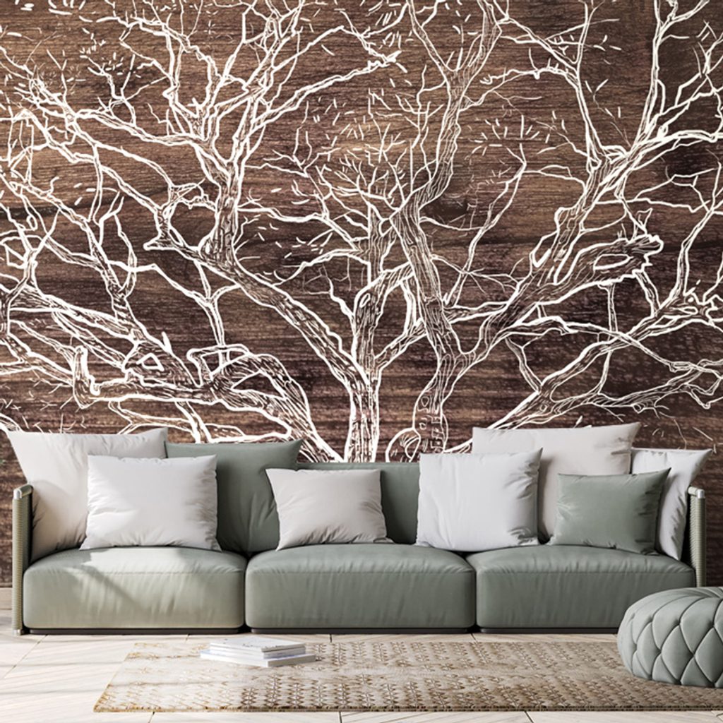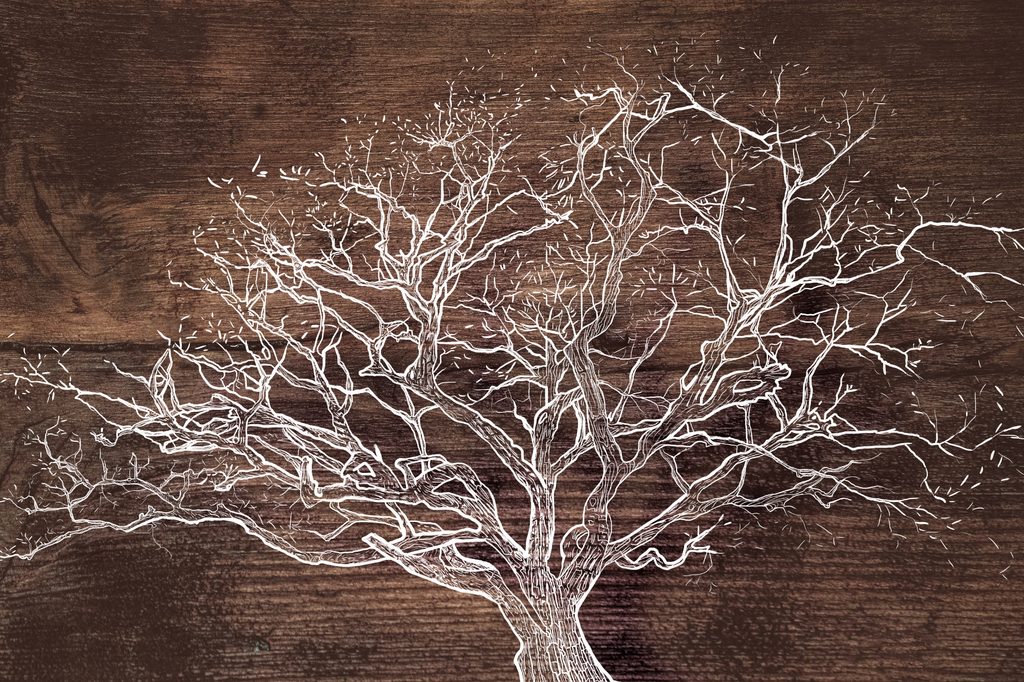 Samolepiaca tapeta majestátna koruna stromu na drevenom pozadí