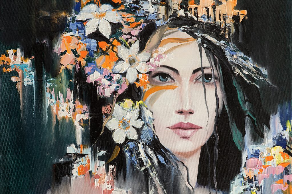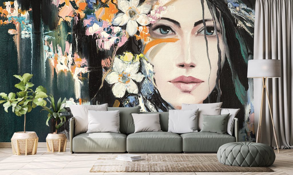 Samolepiaca tapeta maľba dievčaťa s kvetinami