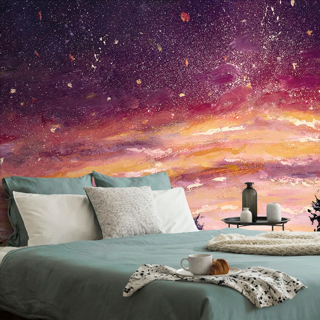 Samolepiaca tapeta maľba večerného levanduľového poľa