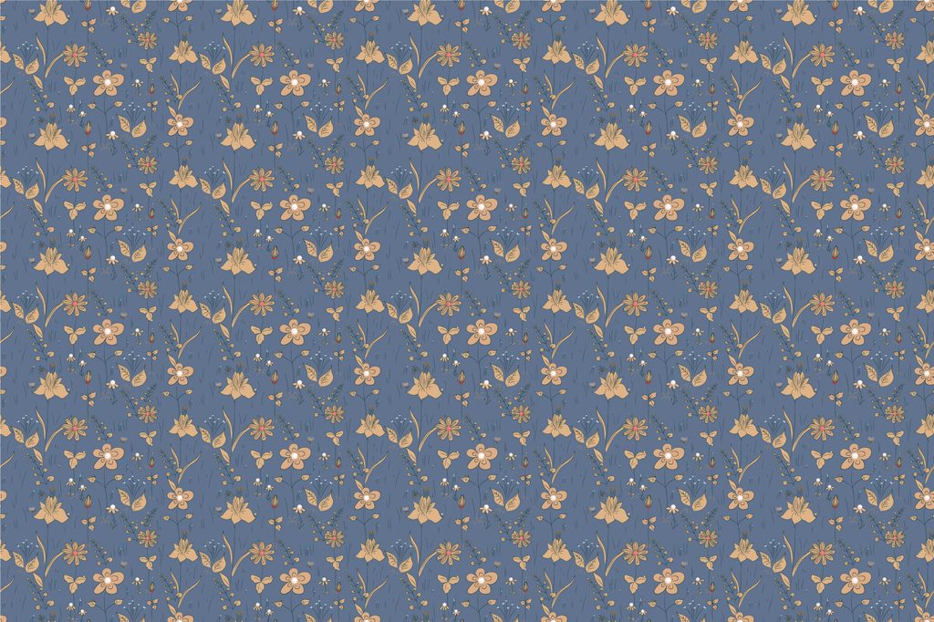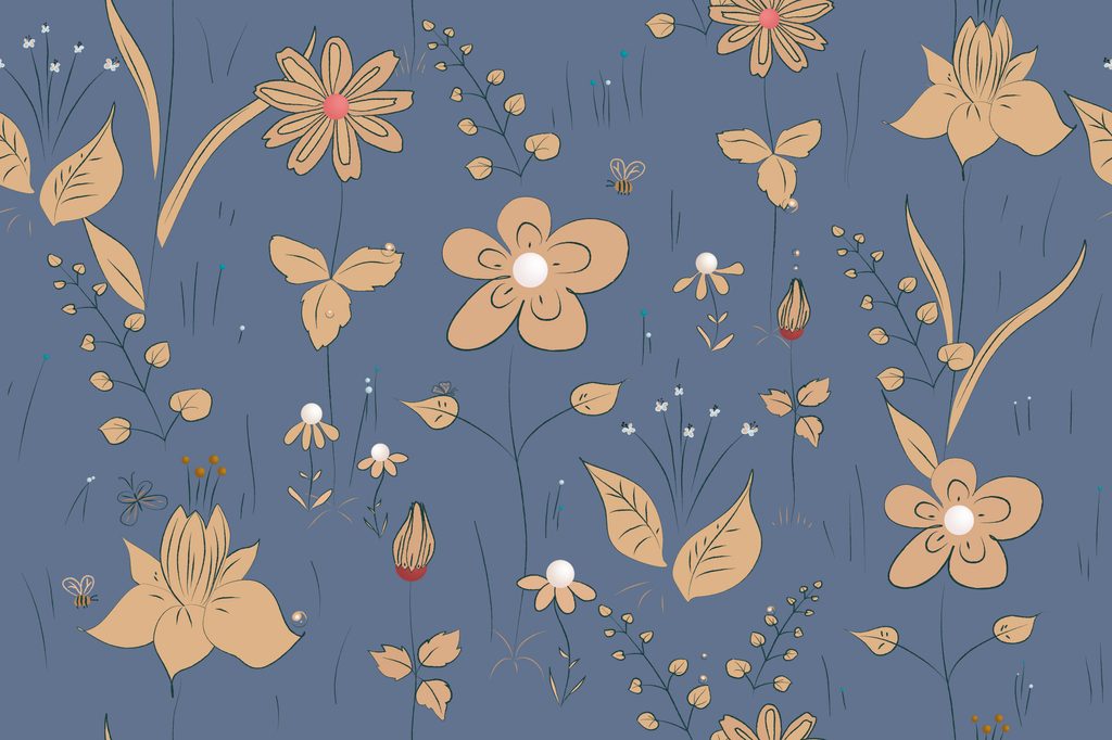 Samolepiaca tapeta maľované kvety v modrom prevedení