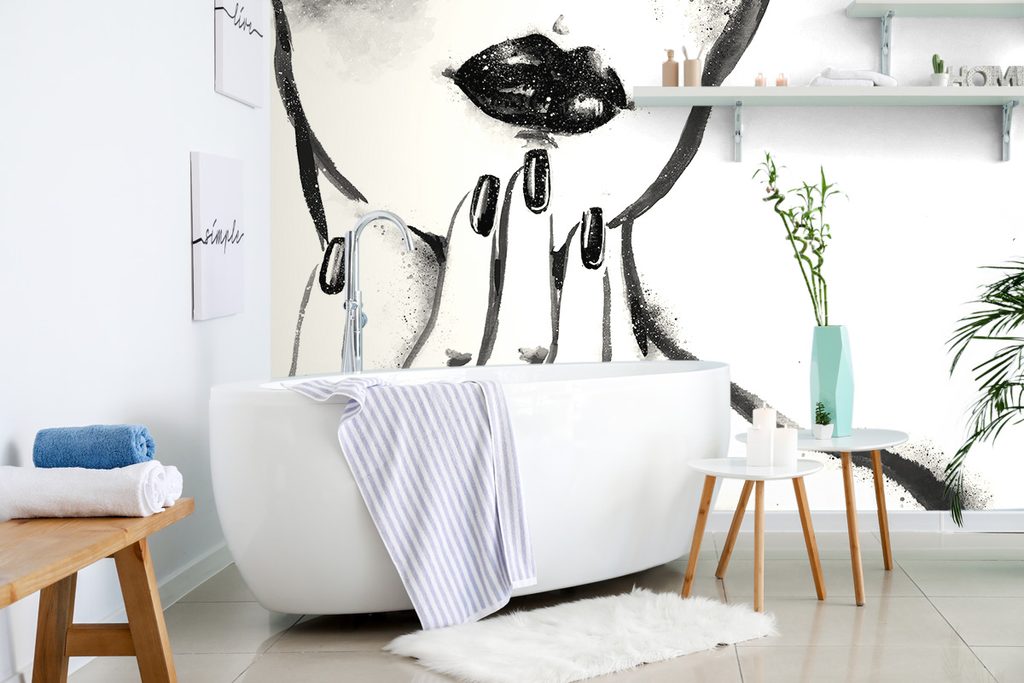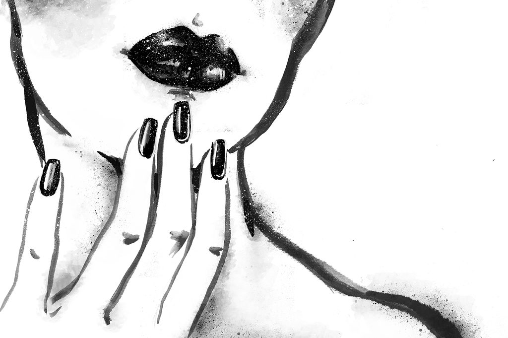 Samolepiaca tapeta maľovaný detail ženských pier v čiernobielom prevedení