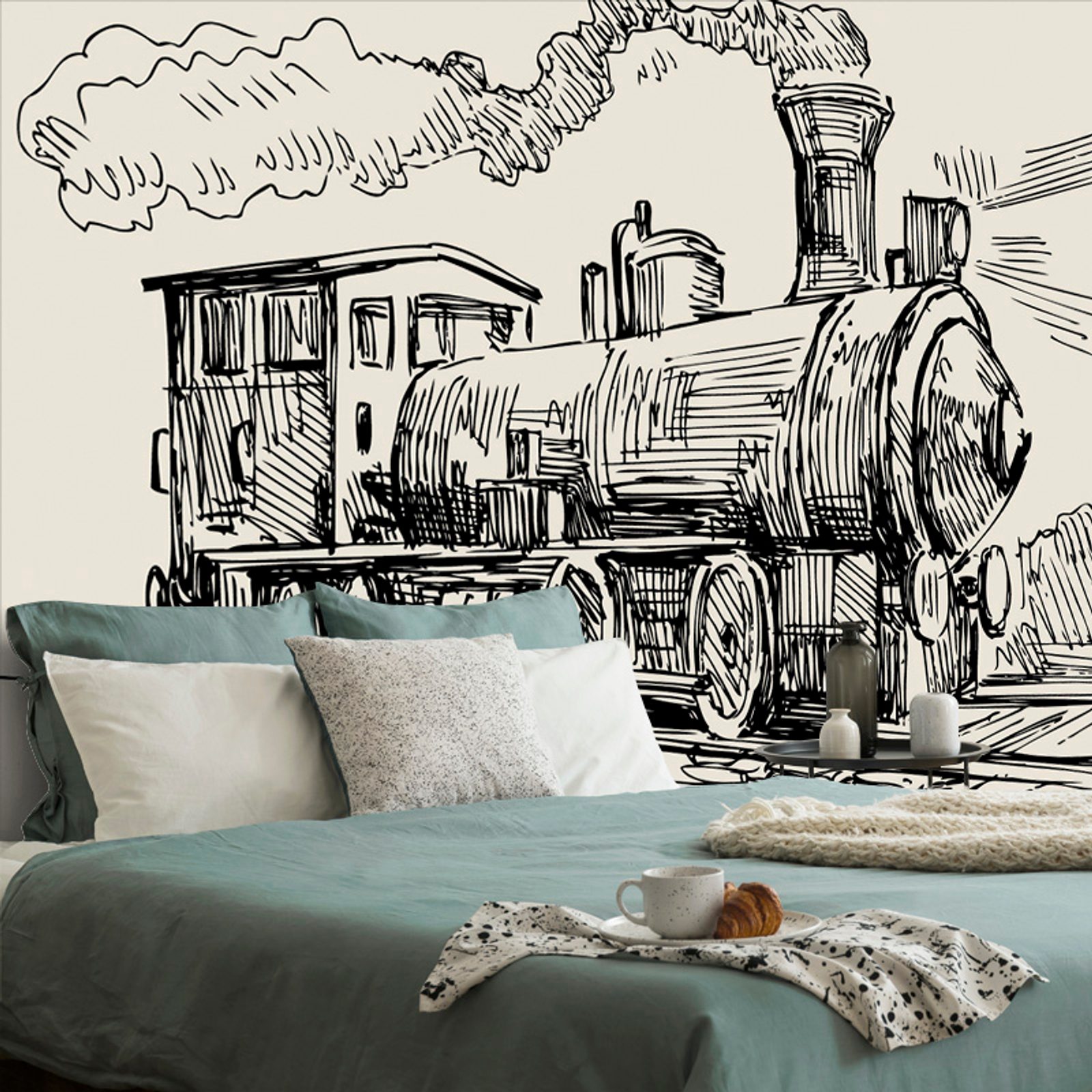 Samolepiaca tapeta maľovaný vlak v umeleckom prevedení