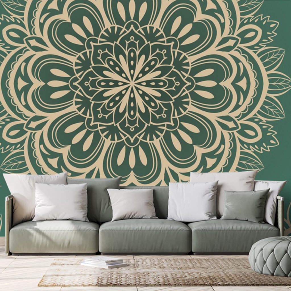 Samolepiaca tapeta Mandala na emeraldovom pozadí