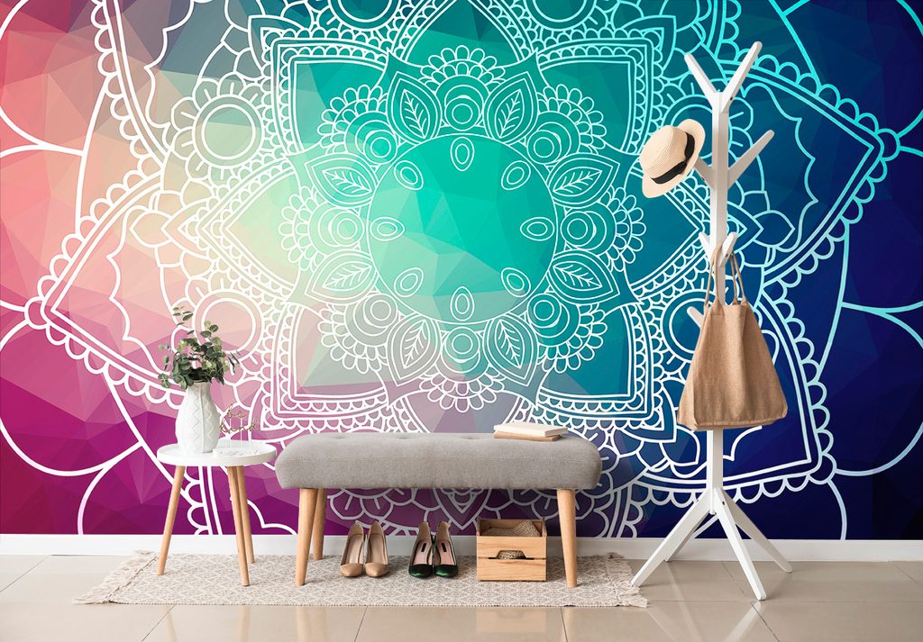 Samolepiaca tapeta Mandala na farebnom pozadí