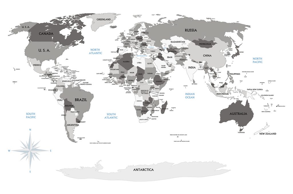 Samolepiaca tapeta mapa s vyznačenými oceánmi