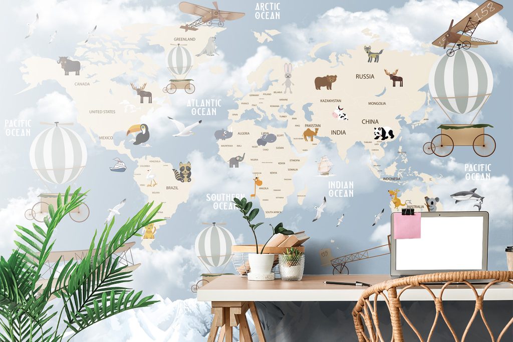 Samolepiaca tapeta mapa so zvieratkami