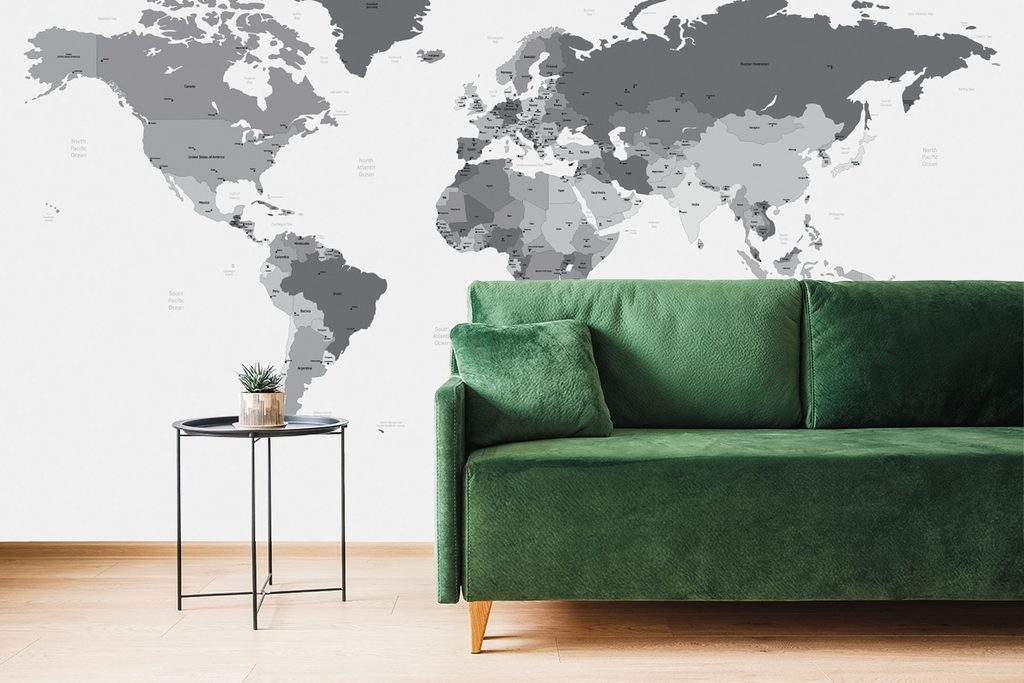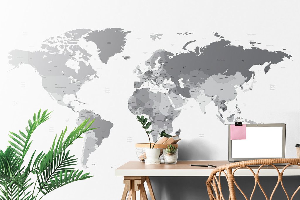 Samolepiaca tapeta mapa štátov v čiernobielom prevedení