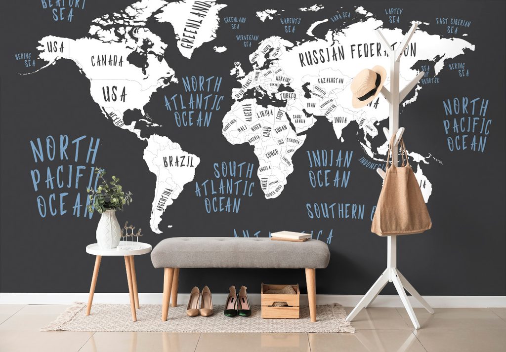 Samolepiaca tapeta zaujímavá mapa na modrom pozadí
