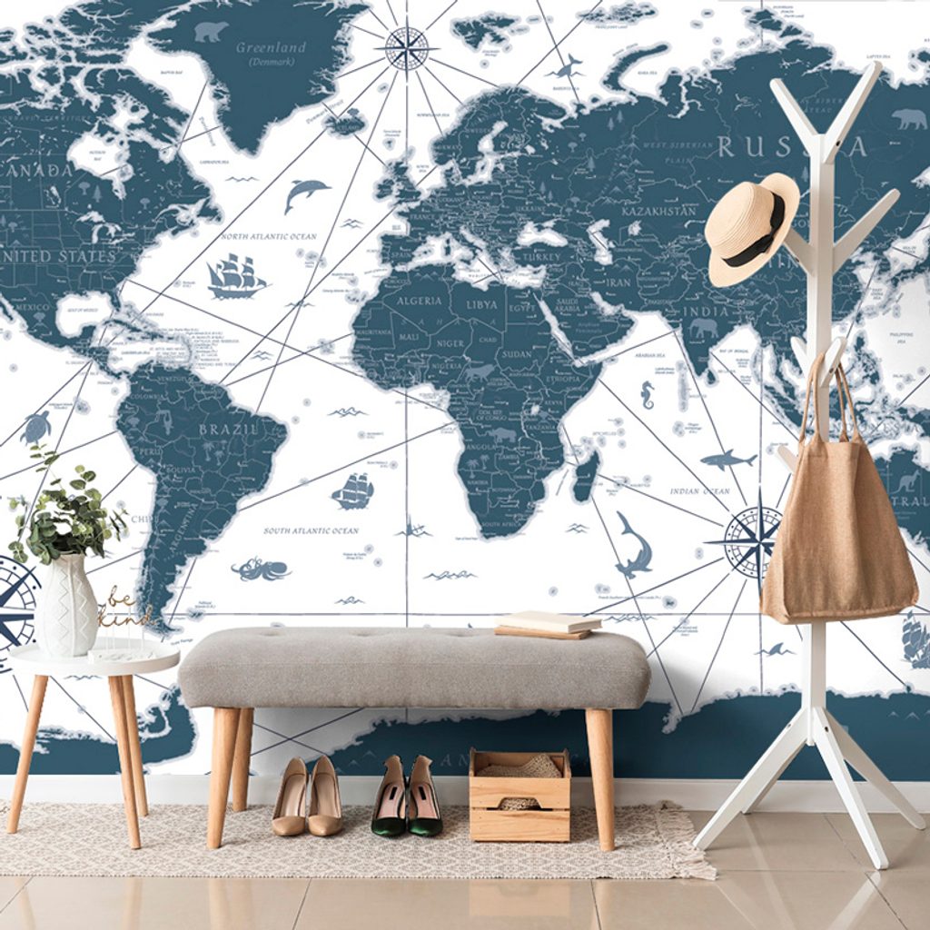 Samolepiaca tapeta mapa sveta s historickým nádychom v modrom prevedení
