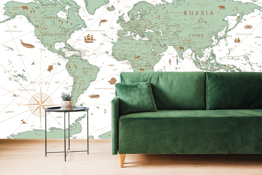 Samolepiaca tapeta mapa sveta s historickým nádychom v zelenom prevedení