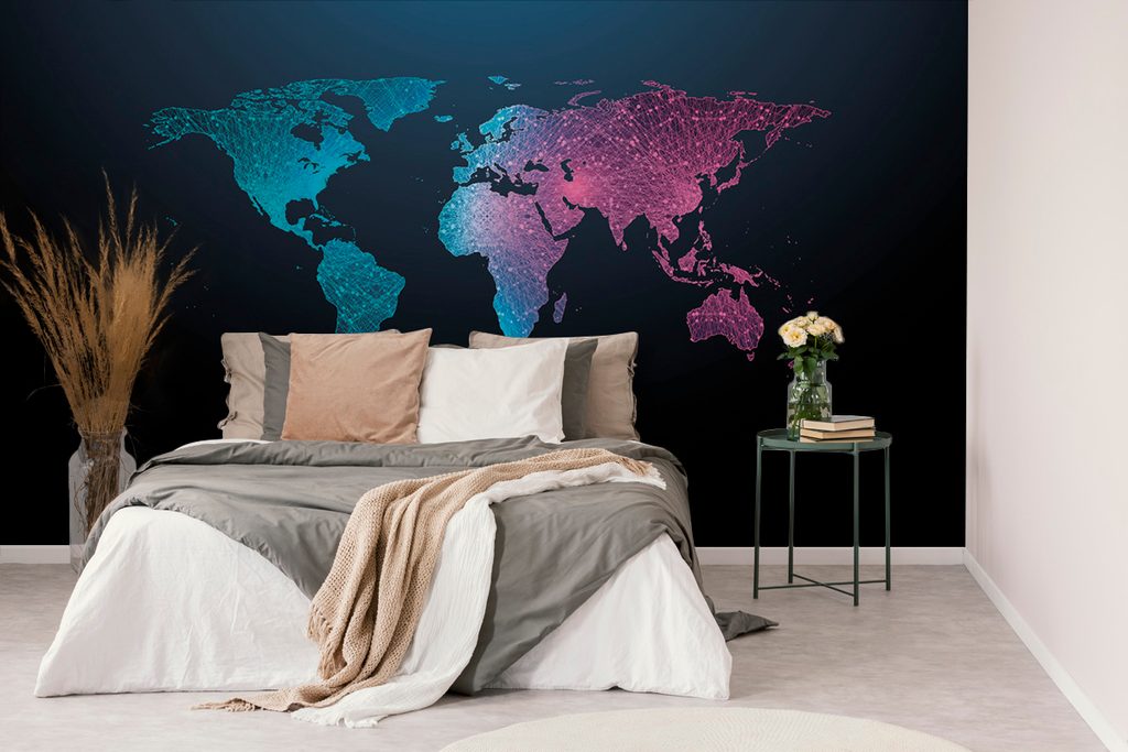 Samolepiaca tapeta mapa sveta s nádherným neónovým detailom