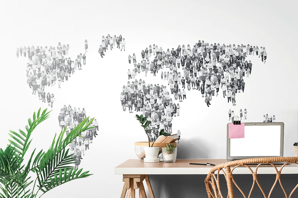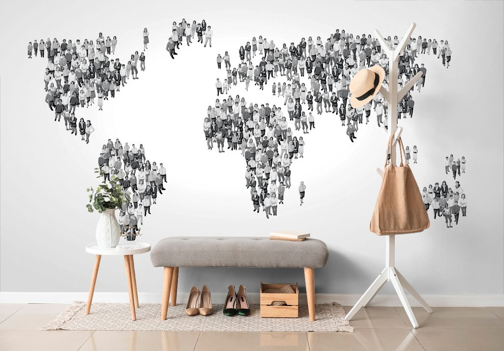 Samolepiaca tapeta mapa tvorená ľudmi v čiernobielom prevedení