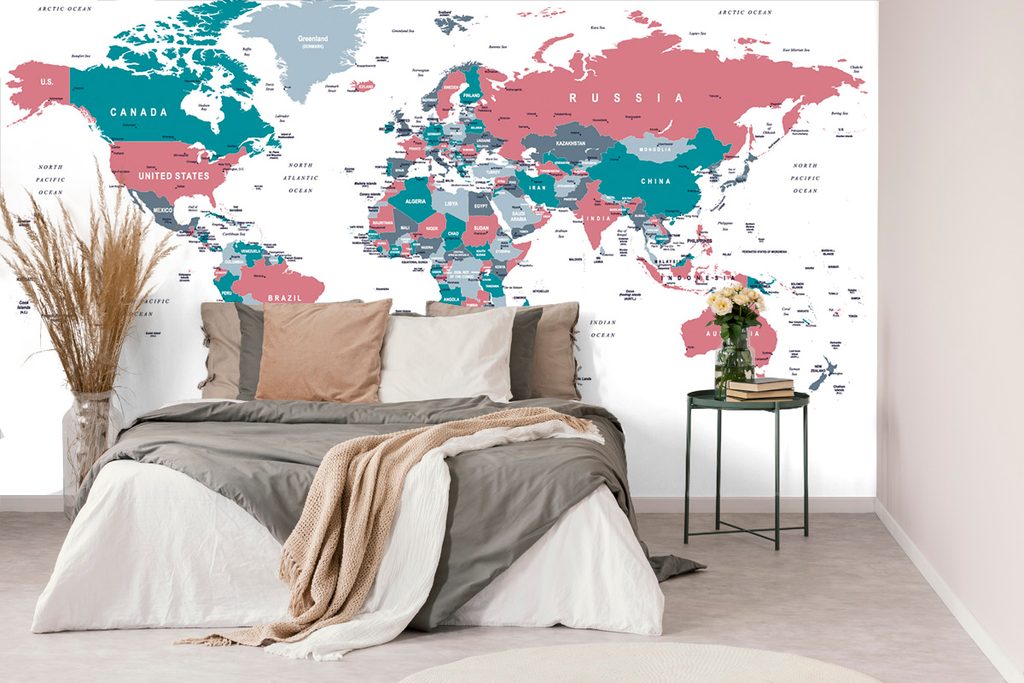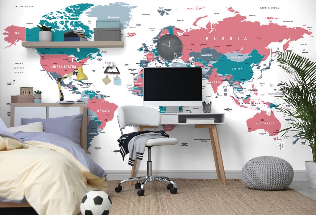 Samolepiaca tapeta mapa v pútavom pastelovom prevedení