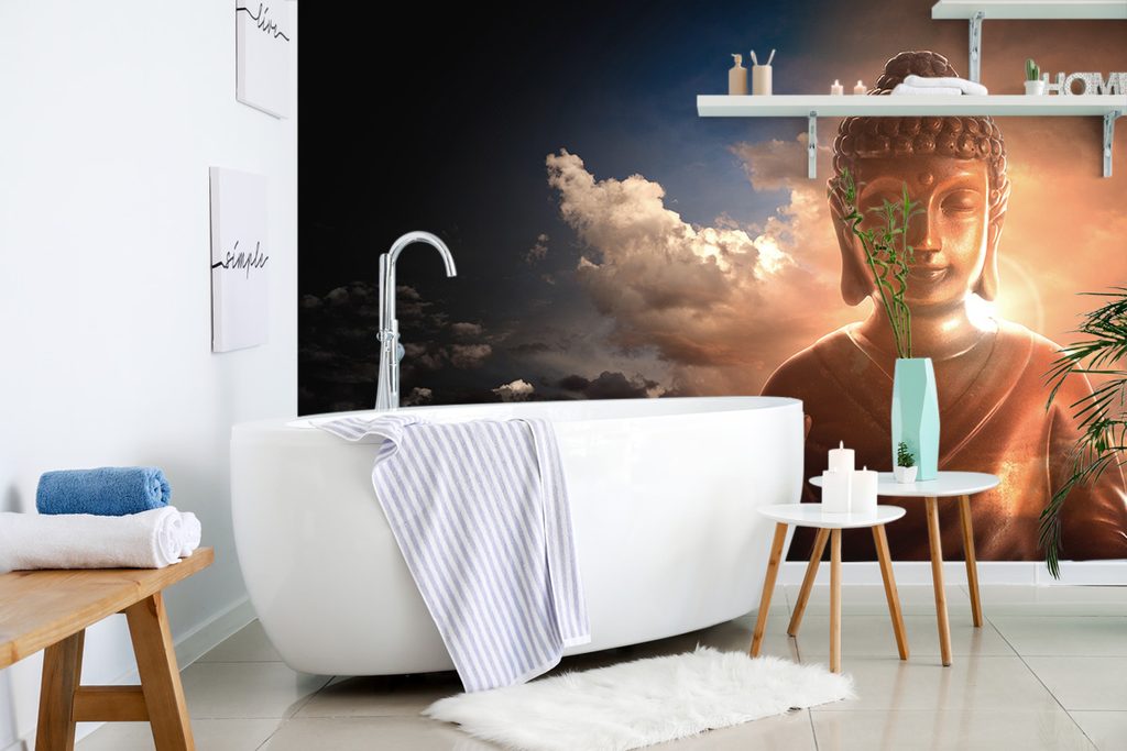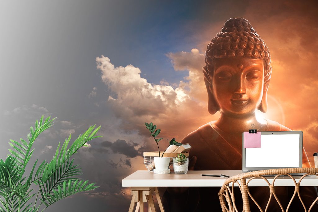 Samolepiaca tapeta meditujúci Budha v oblakoch