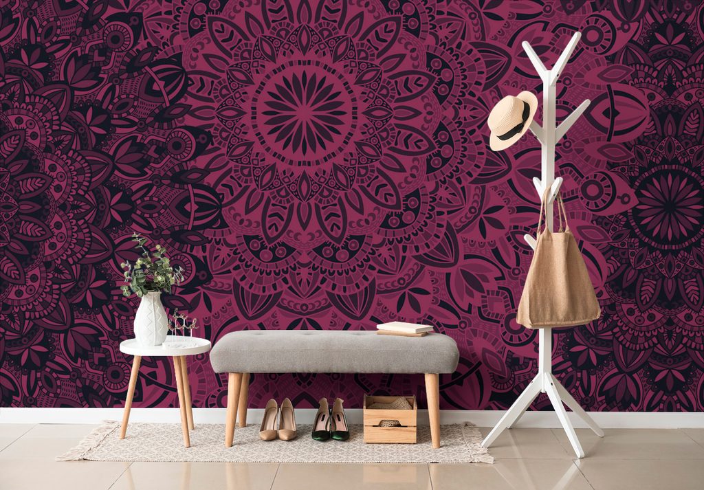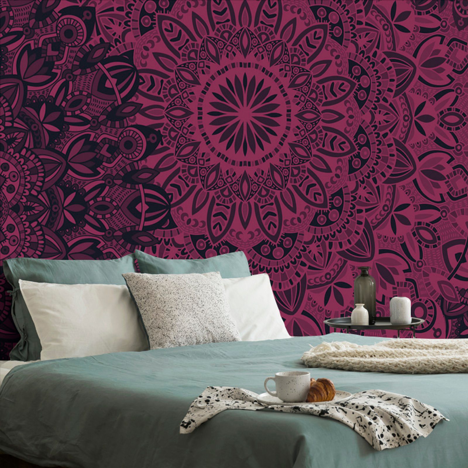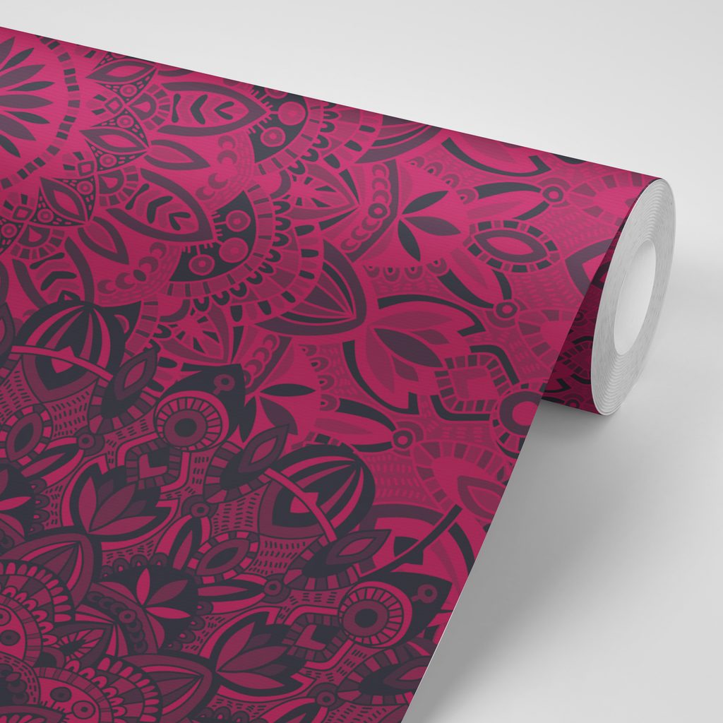 Samolepiaca tapeta moderná Mandala v čierno-ružovom prevedení