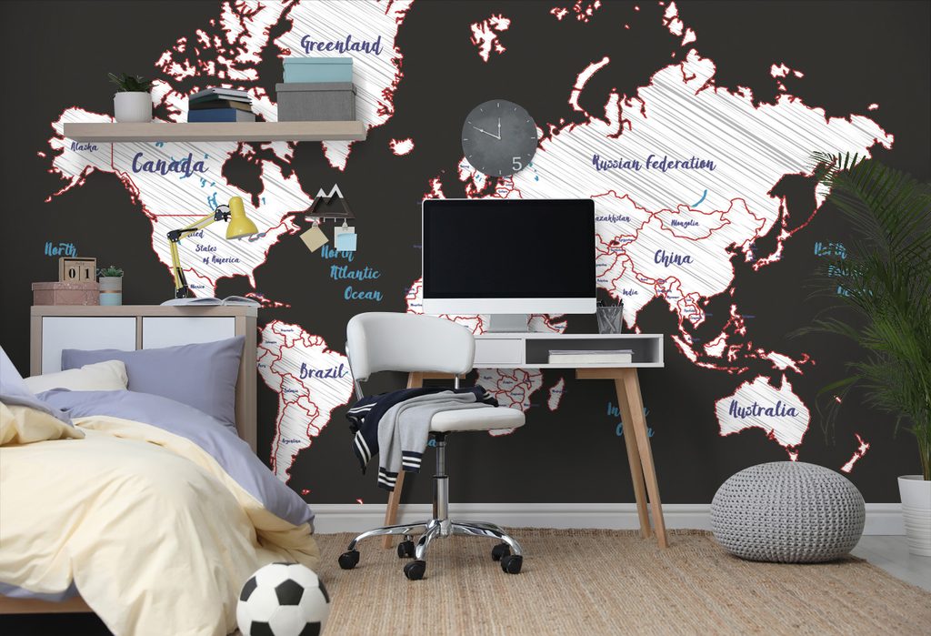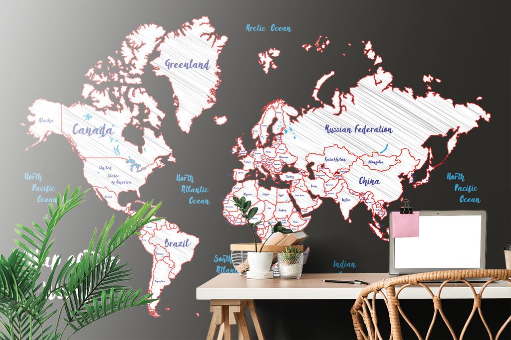 Samolepiaca tapeta moderná mapa v bielo-červenom prevedení